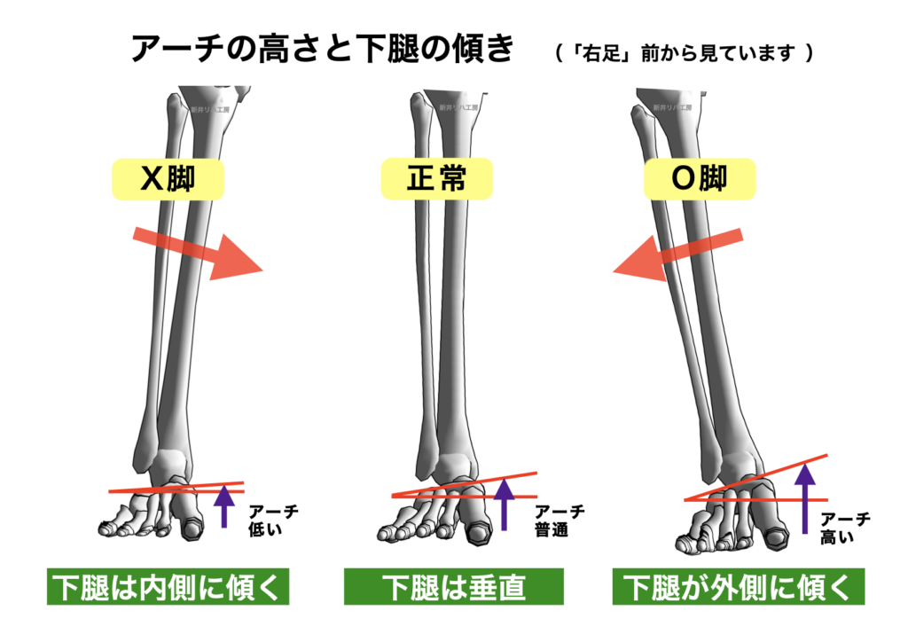 アーチの高低が、下腿の傾きに直結します